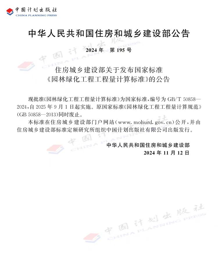 《园林绿化工程工程量计算标准》GBT 50858-2024
